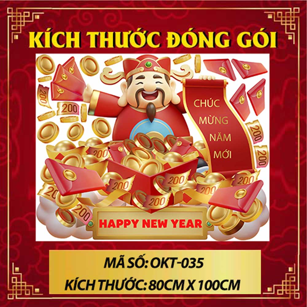 DECAL DÁN KÍNH TRANG TRÍ TẾT THẦN TÀI CẦM LÌ XÌ TRAO TÀI LỘC