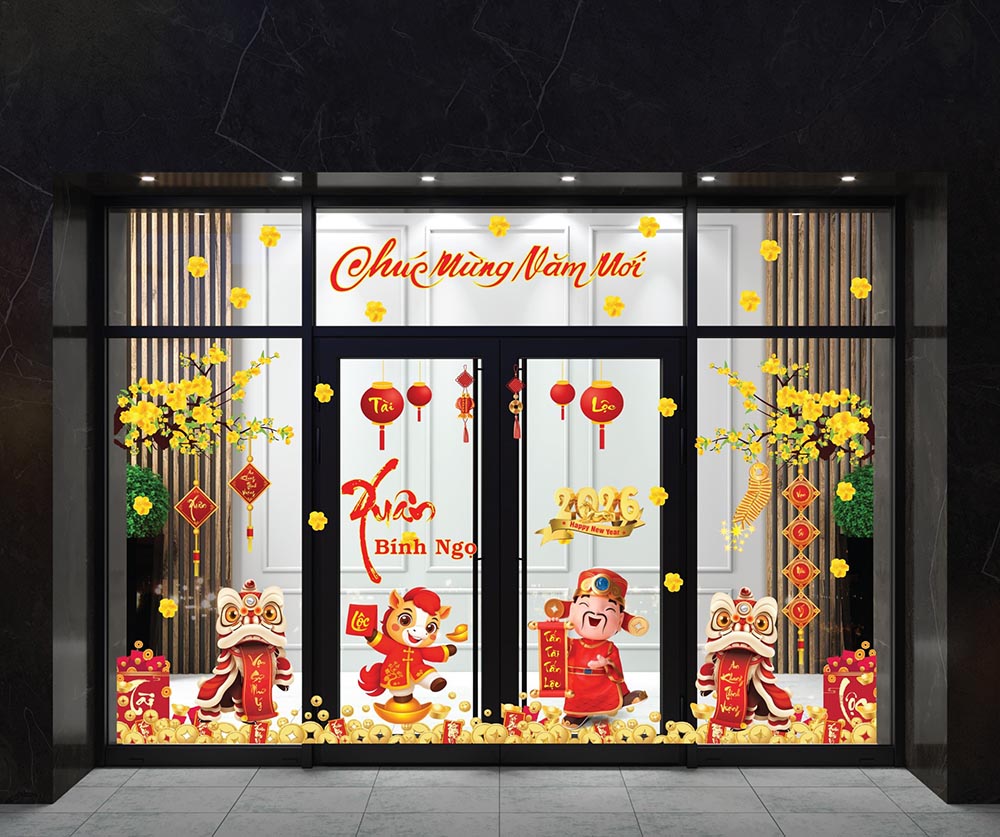 Decal trang trí tết 2024 tạo nên một không gian 'Tết Việt'của bạn trong dịp Tết nguyên đán, để cùng chào đón năm mới trong tâm trạng phấn khởi và báo hiệu một năm mới đến thật nhiều may mắn,tràng đầy hạng phúc...!!!