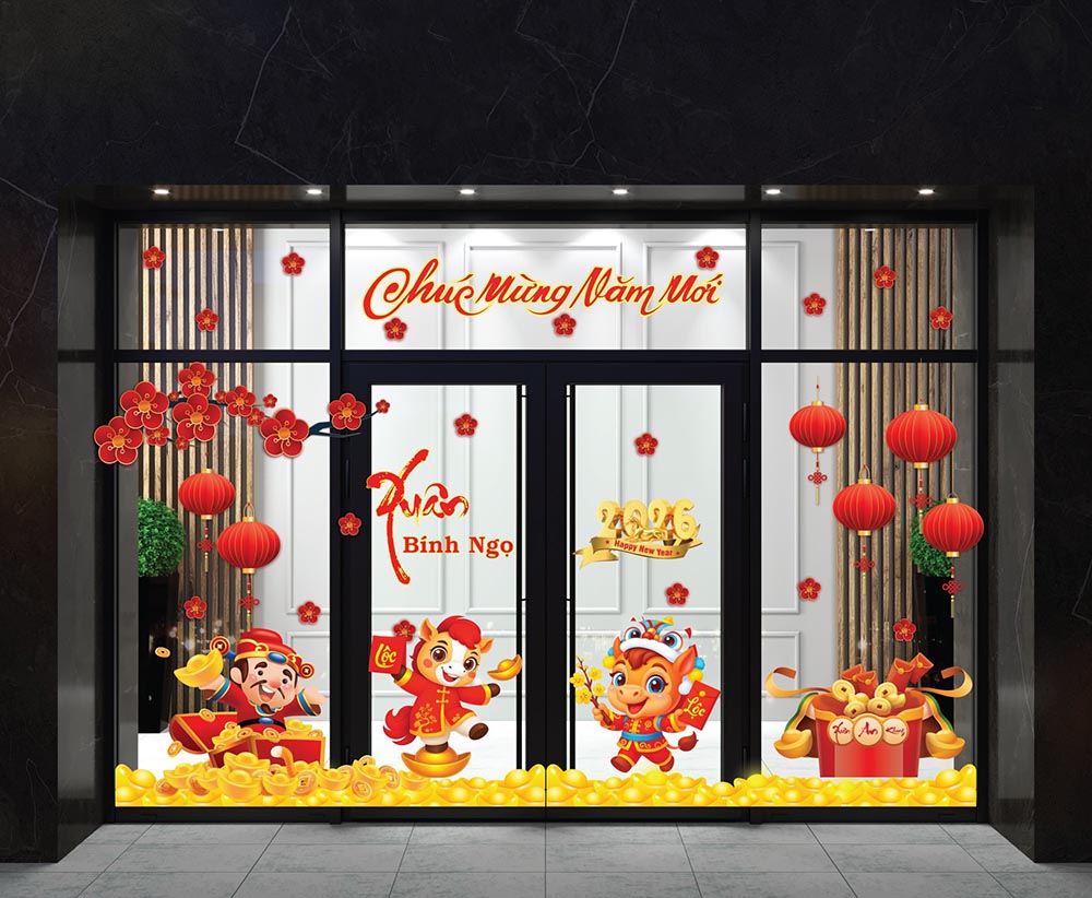Decal trang trí tết 2024 tạo nên một không gian 'Tết Việt'của bạn trong dịp Tết nguyên đán, để cùng chào đón năm mới trong tâm trạng phấn khởi và báo hiệu một năm mới đến thật nhiều may mắn,tràng đầy hạng phúc...!!!